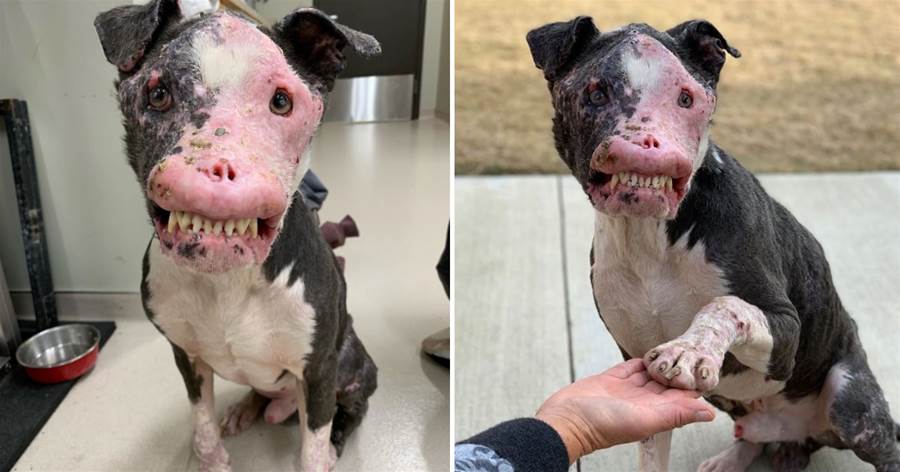 當義工找到狗狗時,也被它的外貌所嚇倒。或許是得知這些人是來救它的,當救援人員上前與它互動時,遲疑了一會的狗狗慢慢伸出了爪子,顯然狗狗是曾經接受過一定的訓練,後來它又被放棄了......義工給它起名Phoenix。隨即將狗狗送到獸醫診所接受治療。